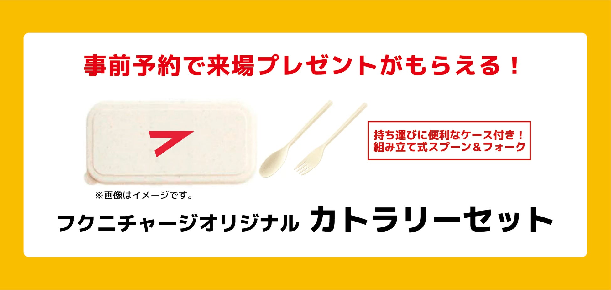 前日までに事前来場予約をされたお客様に、フクニチャージの「フ」のマークが入ったカトラリーセットをプレゼント。