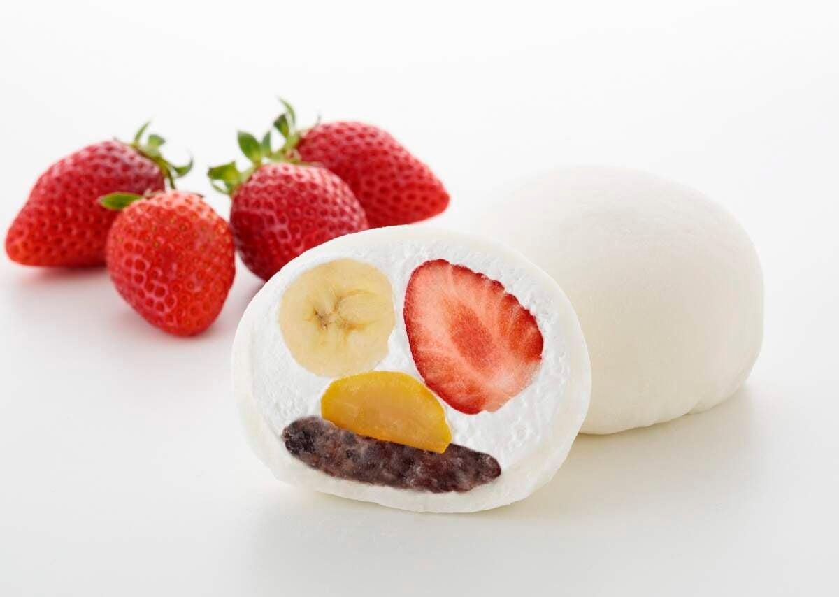 ふわふわなお餅の中に、苺、バナナ、栗、粒あん、ホイップクリームが入った洋菓子のような大福です。100%のこだわりから誕生した養老軒一番人気の大福です。