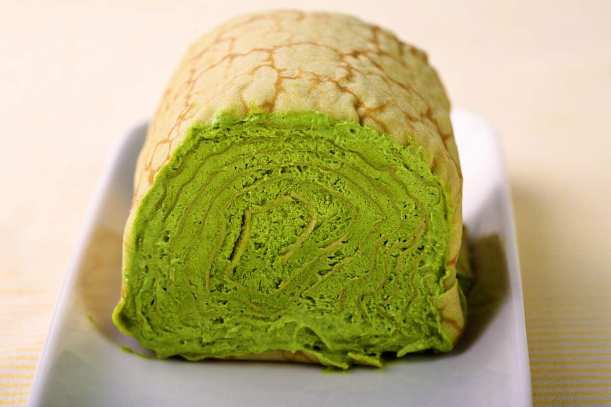 宇治の濃厚なお抹茶を使い1枚1枚丁寧に巻いた手づくりのミルクレープロール。