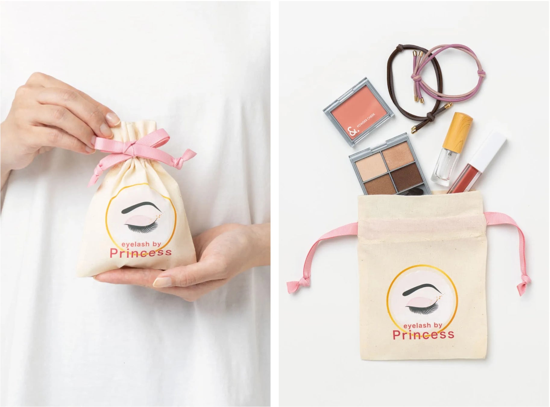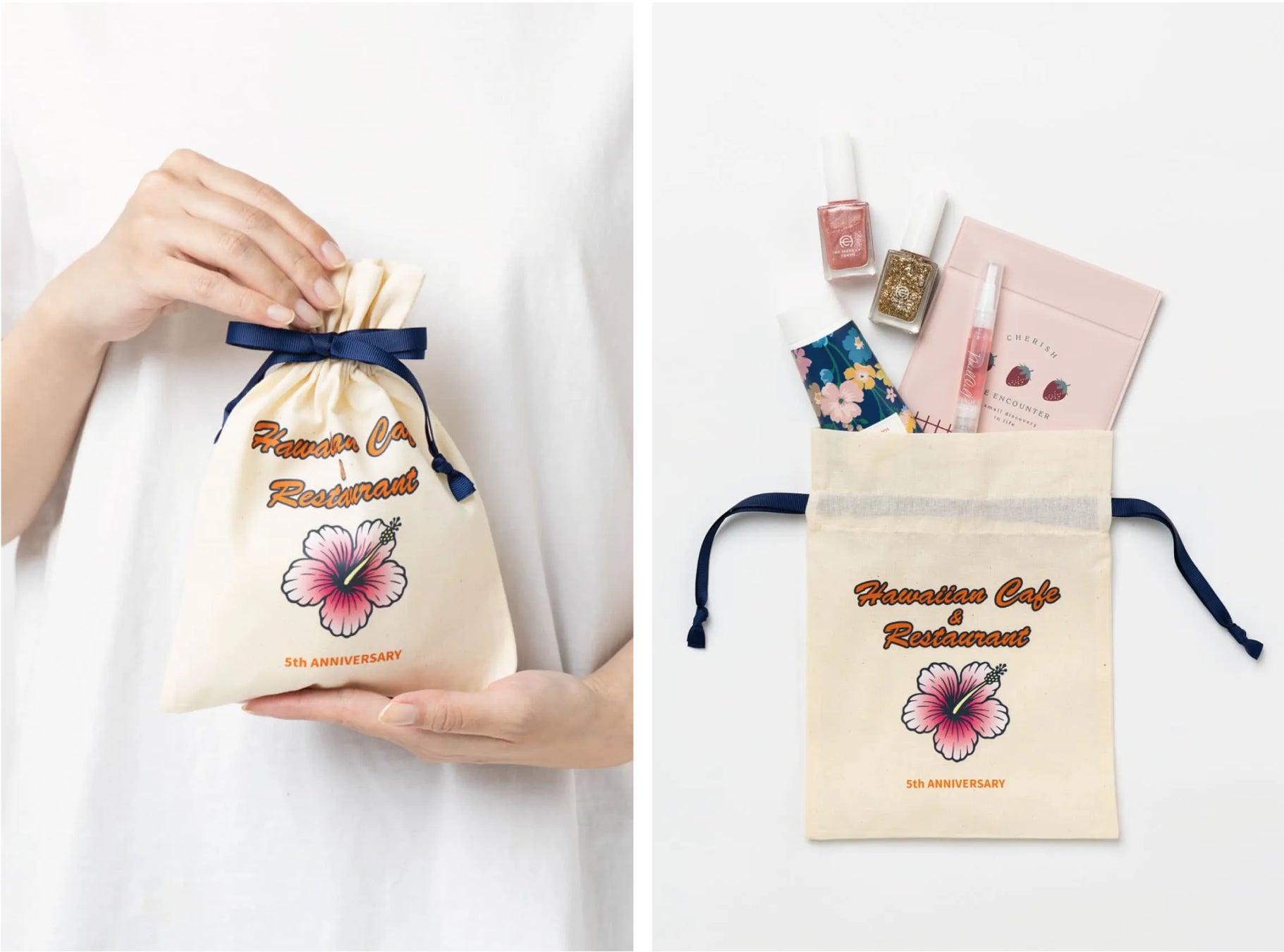 7色から選べるカラーリボンが目をひくコットン巾着。SSからLの4サイズ展開でご用意しています。ひも部分はリボン結びがしやすい長めの仕様で、ノベルティやギフト用にも最適。コスメ関連のプロモーション、展示会などの来場記念、オリジナル雑貨の制作などにもいかがでしょうか。
