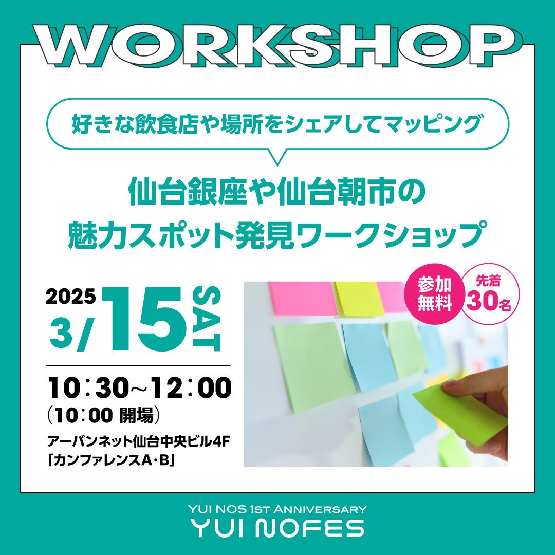 NTT 都市開発株式会社(本社:東京都千代田区、代表取締役社長 池田 康)は、アーバンネット仙台中央ビル 低層部施設「YUI NOS(読み:ゆいのす)」の開業1周年を記念して、来訪者のみなさまにこれまでの感謝の気持ちをお伝えし、今後もより多くの方々に愛される施設をめざして、1周年記念イベント『YUI NOFES(読み:ゆいのふぇす)』を、2025年3月15日(土)に開催いたします。