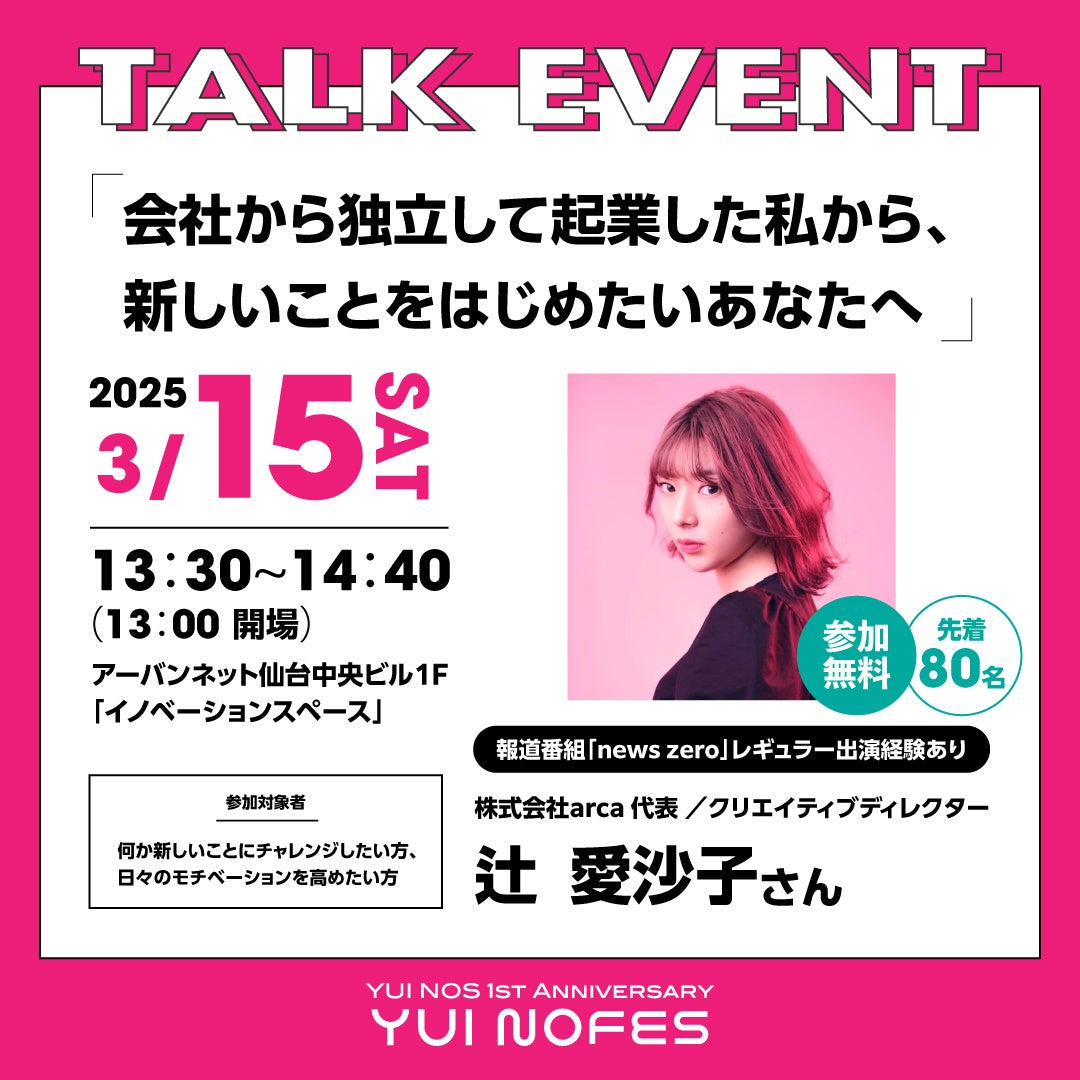 アーバンネット仙台中央ビル 低層部施設「YUI NOS」3/15(土)開業1周年記念イベント『YUI NOFES』開催!