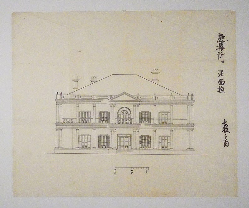 (4)明治期造幣局図面(写)のうち応接所正面姿図 昭和6年(1931) 大阪歴史博物館蔵
