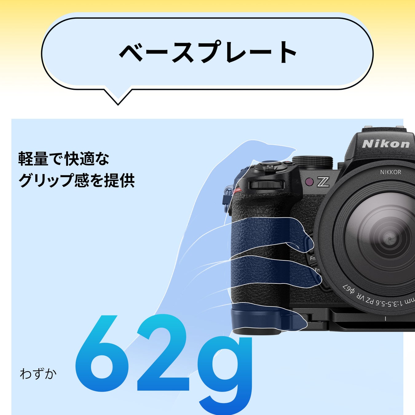 Nikon Z50 II用ベースプレートは、カメラの底面を効果的に保護し、わずか62gという軽量で快適なグリップ感を提供します。