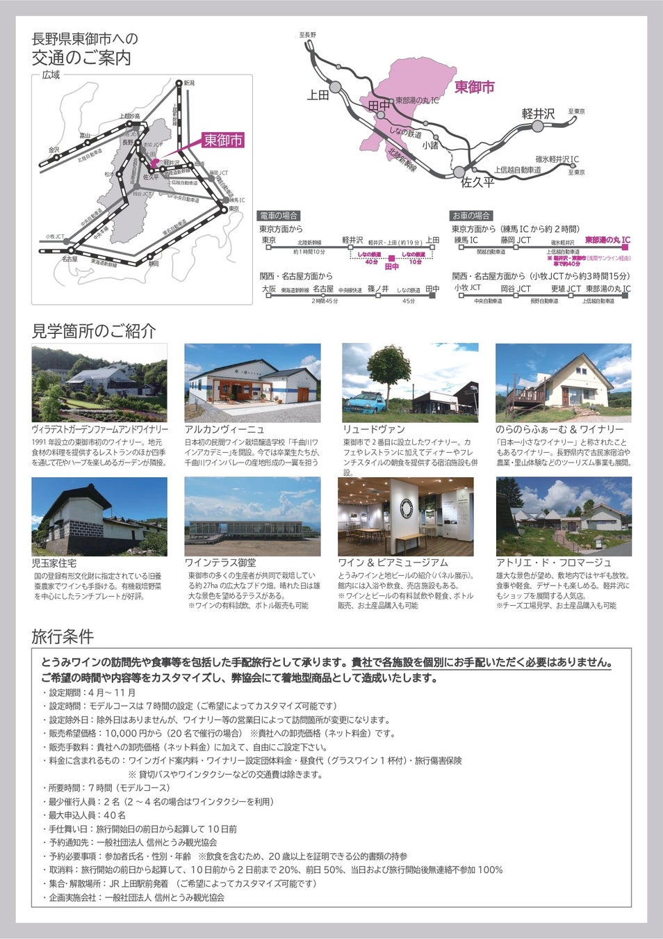 ・行程:JR上田駅(10:15 発) → 東御市内ワイナリー・関連施設 → JR上田駅(17:15 着)