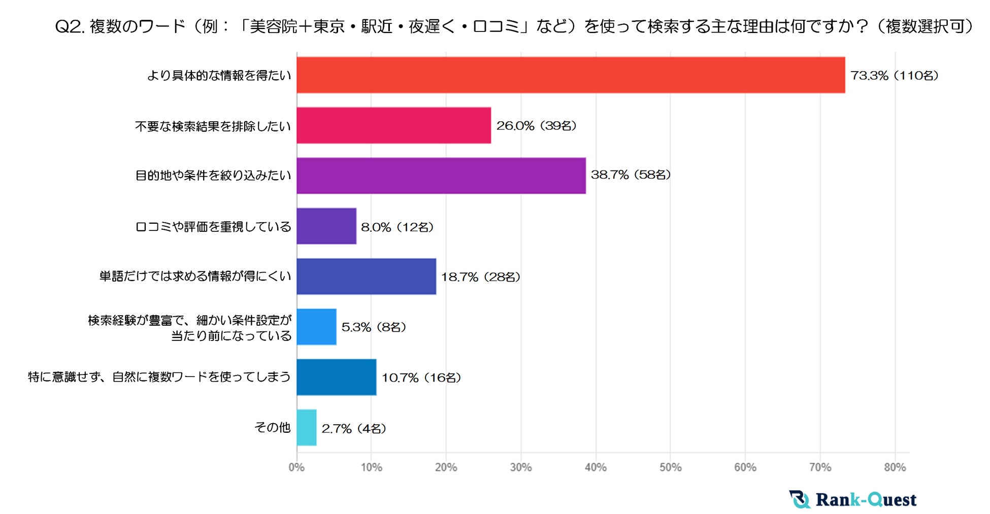 調査結果➁:複数のワード(例:「美容院+東京・駅近・夜遅く・口コミ」など)を使って検索する主な理由は何ですか?(注3)
