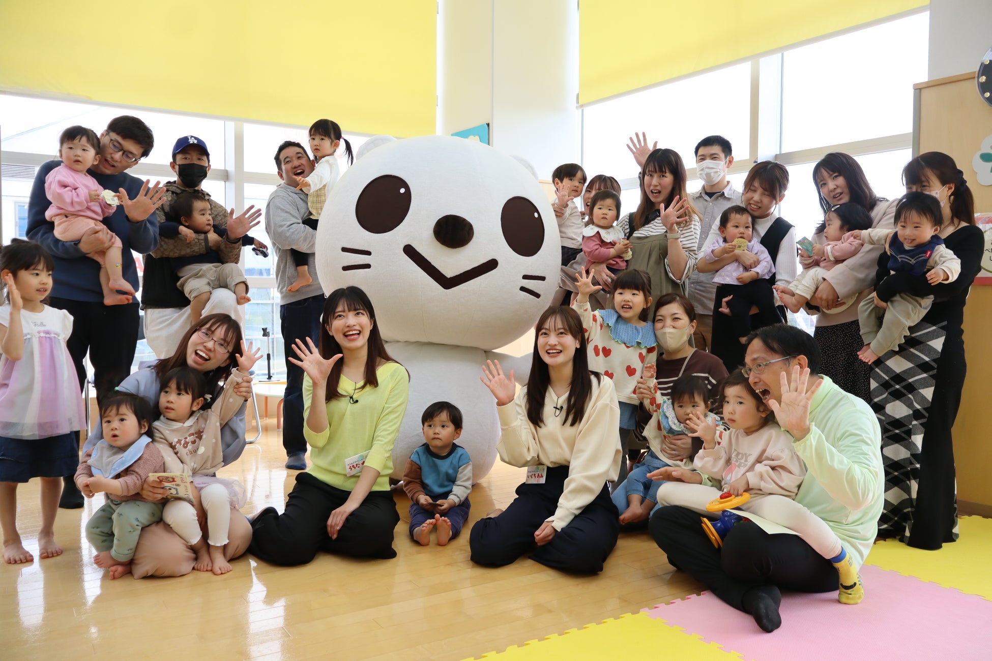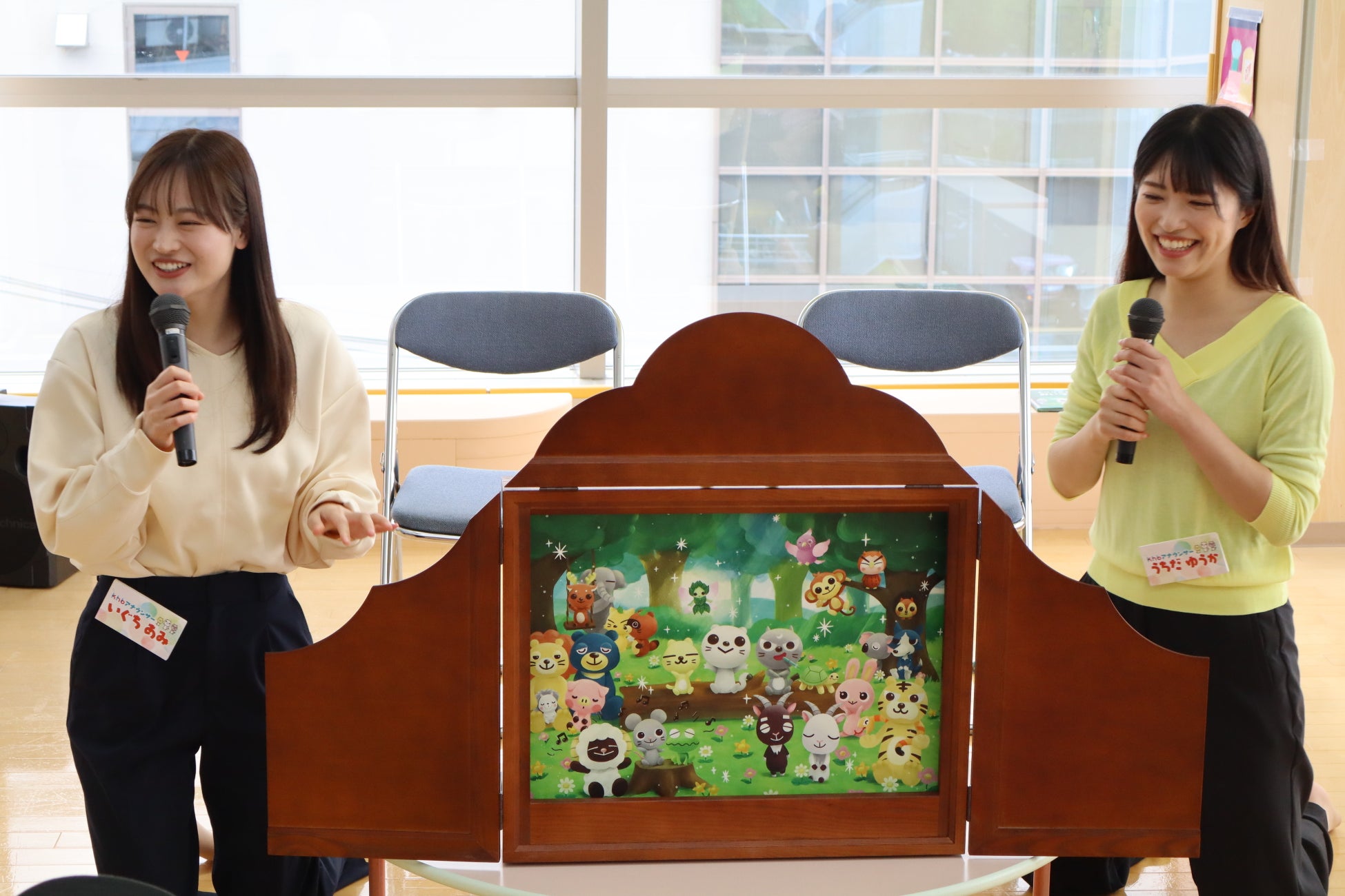 「khbこどもえがおだいさくせん!」では、khbアナウンサーとぐりりが県内を巡って絵本の読み聞かせ活動を行う‘ぐりりキャラバン’を展開し、訪問先の施設様にも贈呈しています。4月に訪れたのびすく泉中央(仙台市泉区)様には、井口亜美アナウンサー・内田有香アナウンサーより贈呈させて頂きました。