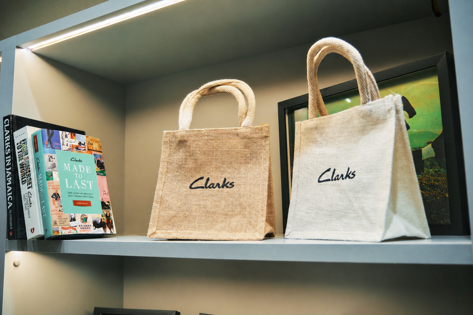 クラークスストアでは、シューズをお買い上げのお客様にオリジナルのジュートミニトートをプレゼント。ナチュラルな素材感が魅力の日常使いしやすいアイテムです。
