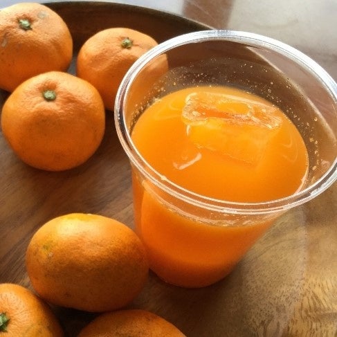 旬の柑橘の栄養を逃さない低速ジューサーで搾ります。