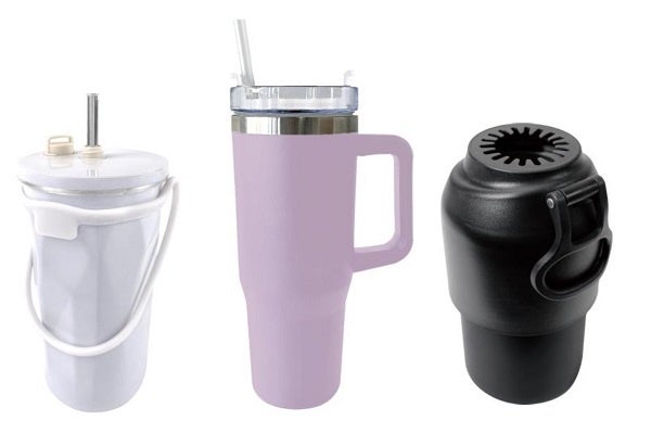 『ストロー付きステンレスタンブラー』、『取っ手付きタンブラー』は、どちらもふた付きで、倒れてもこぼれにくく、オフィスやおうち時間など日常使いに便利にお使いいただけます。
