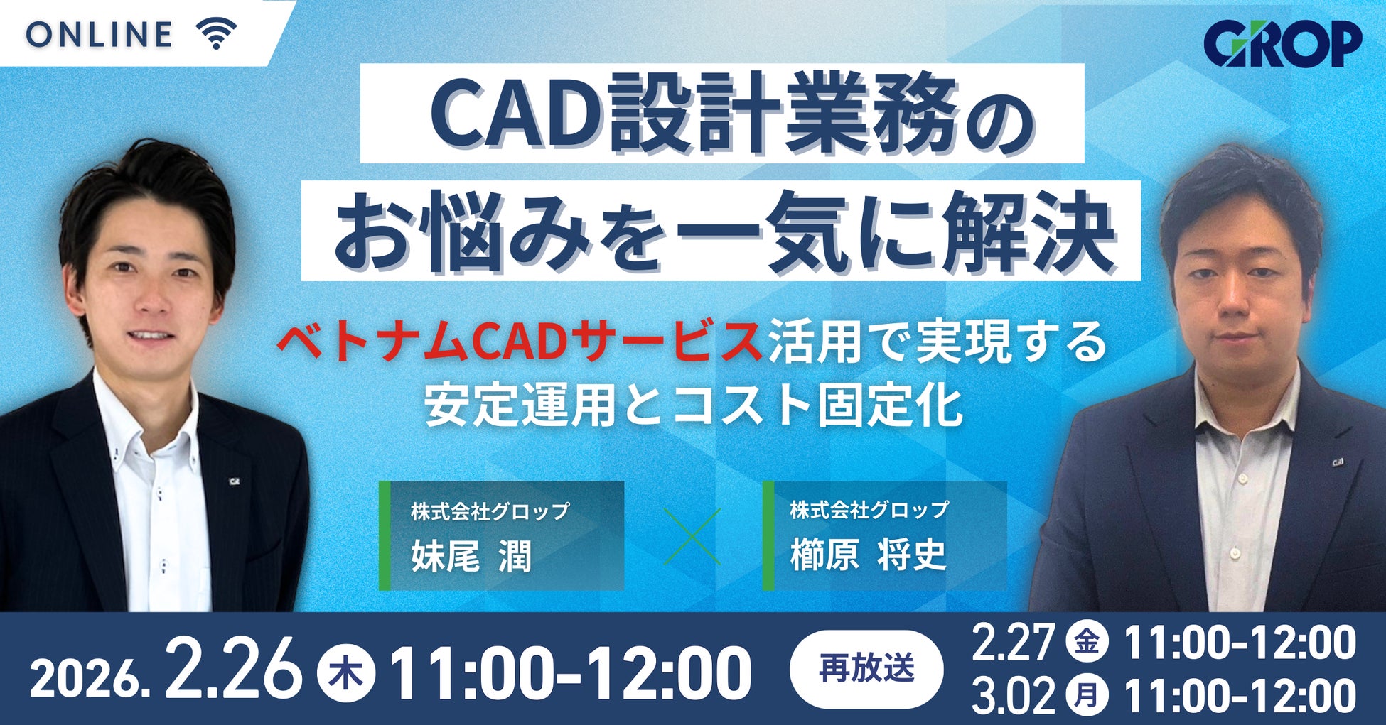 人材サービス事業を展開する[株式会社グロップ](本社:岡山県岡山市、代表取締役社長:原田 竜一郎)は、2026年2月26日(木)に【CAD設計業務 ベトナムCADサービス活用】をテーマとした、自社ウェビナーを開催いたします。本ウェビナーでは、グロップのベトナムCADサービスを活用し、設計リソースを「安定運用」させながら「コストを固定化」する具体策を解説します。