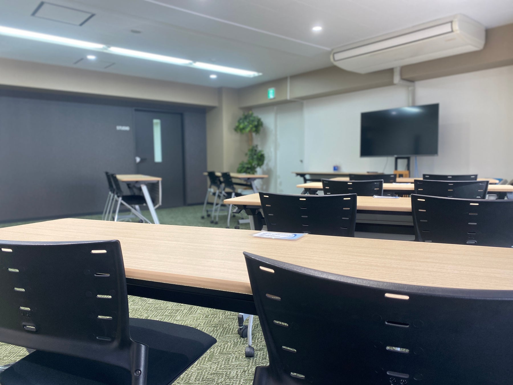 スタジオ前室に10名~15名程度が利用できる控室があり、会議や小規模な研修などにも活用可能。