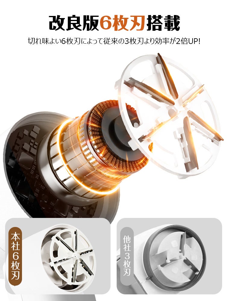 従来品を大きく上回る改良版6枚刃×厚型ハニカム構造を搭載し、繊細なニットから厚手のコートまで、素材を選ばずスムーズに毛玉を除去します。