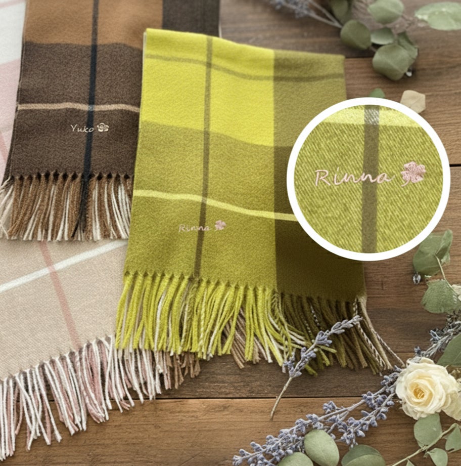 【ココロを贈る 名入れギフトOkulu】この冬のクリスマスギフトに最適。名入れ刺繍で贈る『カシミヤタッチ ストール』に新色が仲間入り