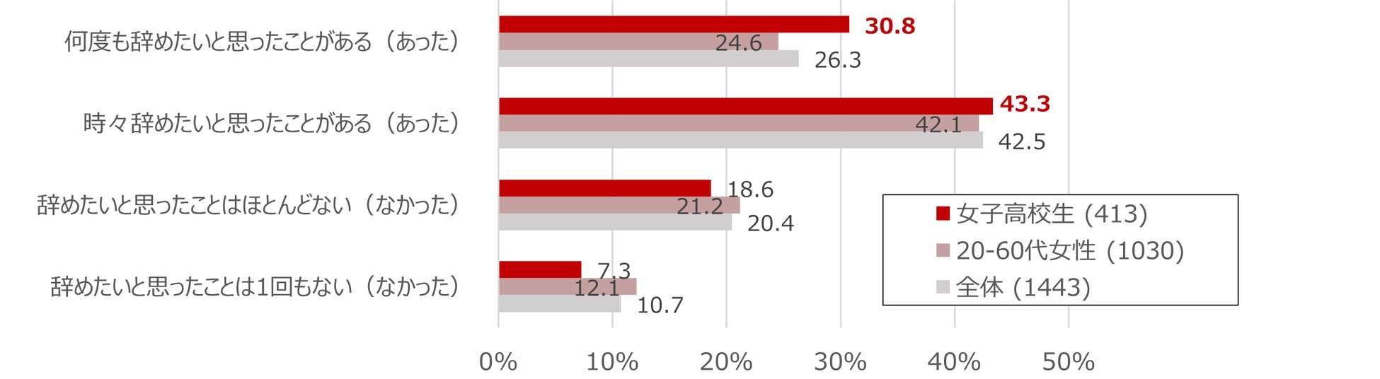 ■女子高校生の7割超が「やめたい」を経験、女性特有の悩みも一因