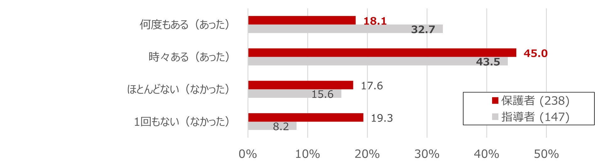 保護者・指導者ともに意見や要望を伝えたことがある人は多かったものの、伝えたことがない人の理由としては「言っても無駄だと思った」の割合が高く、当事者を含む、世代や立場を超えた様々な人がフラットに意見を伝え合える環境の必要性が示唆されました。