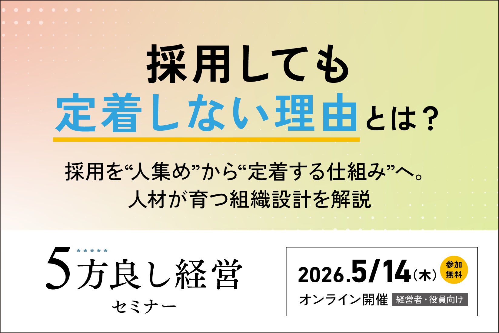 【5月14日開催】採用しても定着しない理由とは?「5方良し経営セミナー」開催