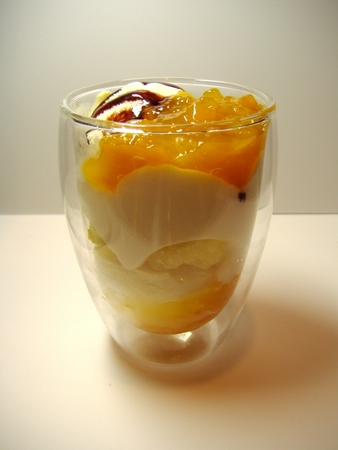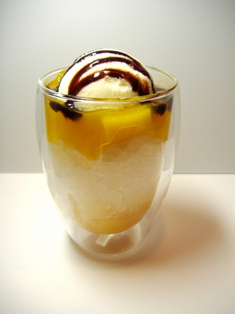 特徴:バニラアイスをベースに、マンゴーコンフィチュール、杏仁アイスクリーム、パイン、スコーン、ノニシロップをトッピング。マンゴーと杏仁の相性がバツグン。