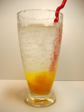 特徴:冷えたソーダにマンゴーコンフィチュールを入れた、ほんのり甘いさっぱりとしたソーダ。暑い夏にぴったり。