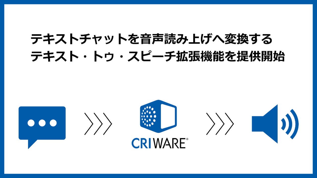 株式会社CRI・ミドルウェア(本社:東京都渋谷区、代表取締役社長:押見 正雄、以下 「CRI」)は、2024年6月25日より当社のサウンドミドルウェア製品「CRI ADX®」にテキスト・トゥ・スピーチ(音声読み上げ)拡張機能の提供を開始いたしました。