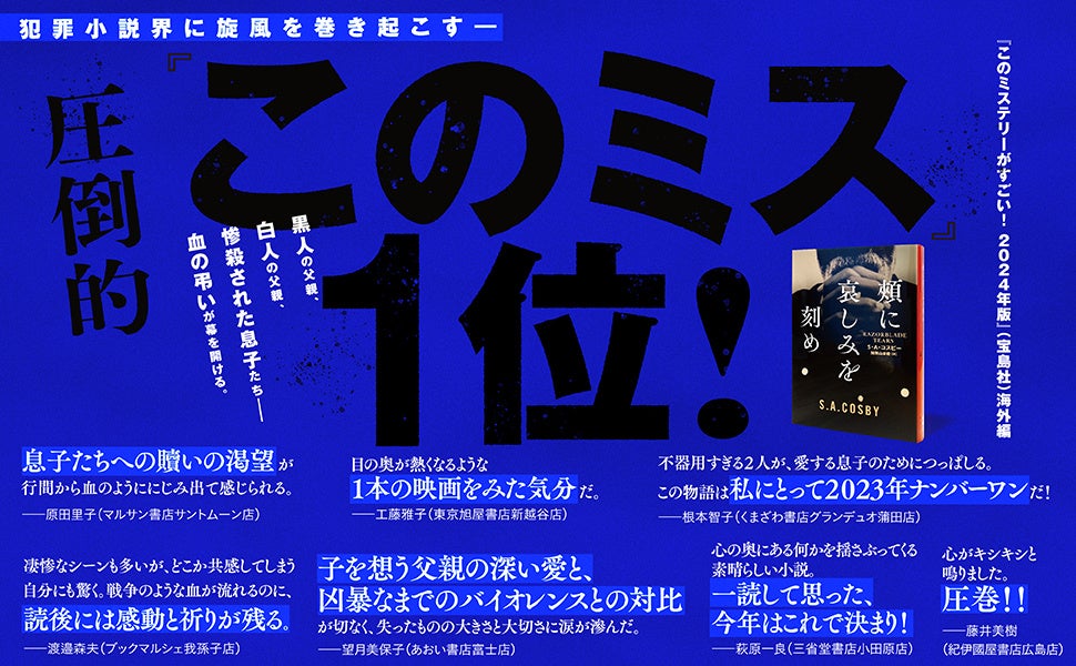 2023年最も面白かったミステリーはこれだ! 『頬に哀しみを刻め』(S・A・コスビー/加賀山卓朗=訳)が『このミス』海外編1位にランクイン!!
