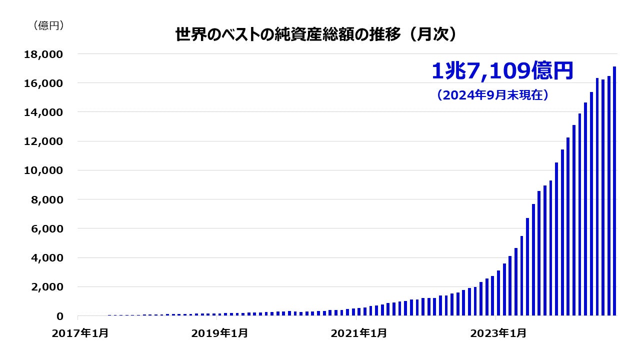 インベスコ・アセット・マネジメント株式会社(代表取締役社長兼CEO:佐藤秀樹、所在地:東京都港区)は同社が運用する公募追加型投資信託「世界のベスト」*1の2024年9月末の運用資産残高が、6ファンド合計で1兆7,000億円を達成し、1兆7,109億円になったことを発表いたします*2。