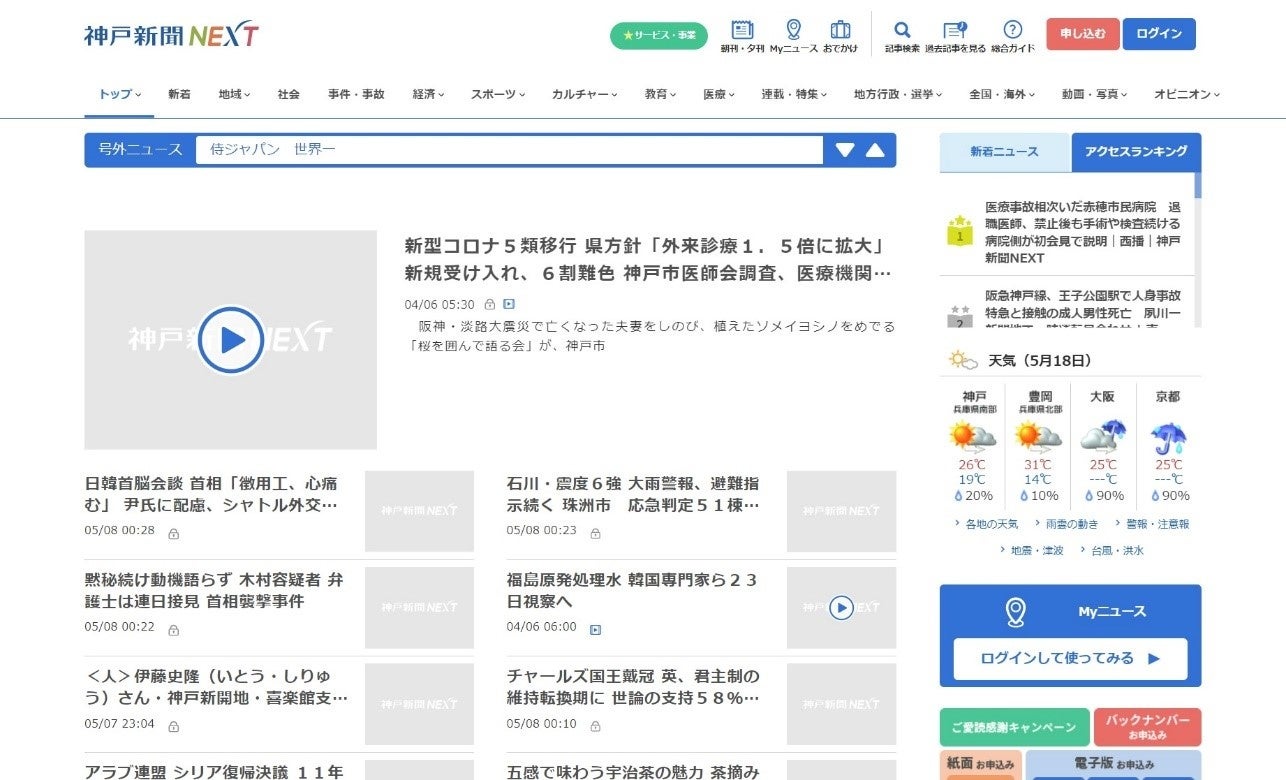 神戸新聞NEXTは2012年11月発刊の電子新聞サービスです。兵庫県内で最大の取材網を持つ地方紙として、きめ細かい地域情報を中心とした電子新聞サービスを読者のみなさまや兵庫県外にお住まいの方に提供してきました。