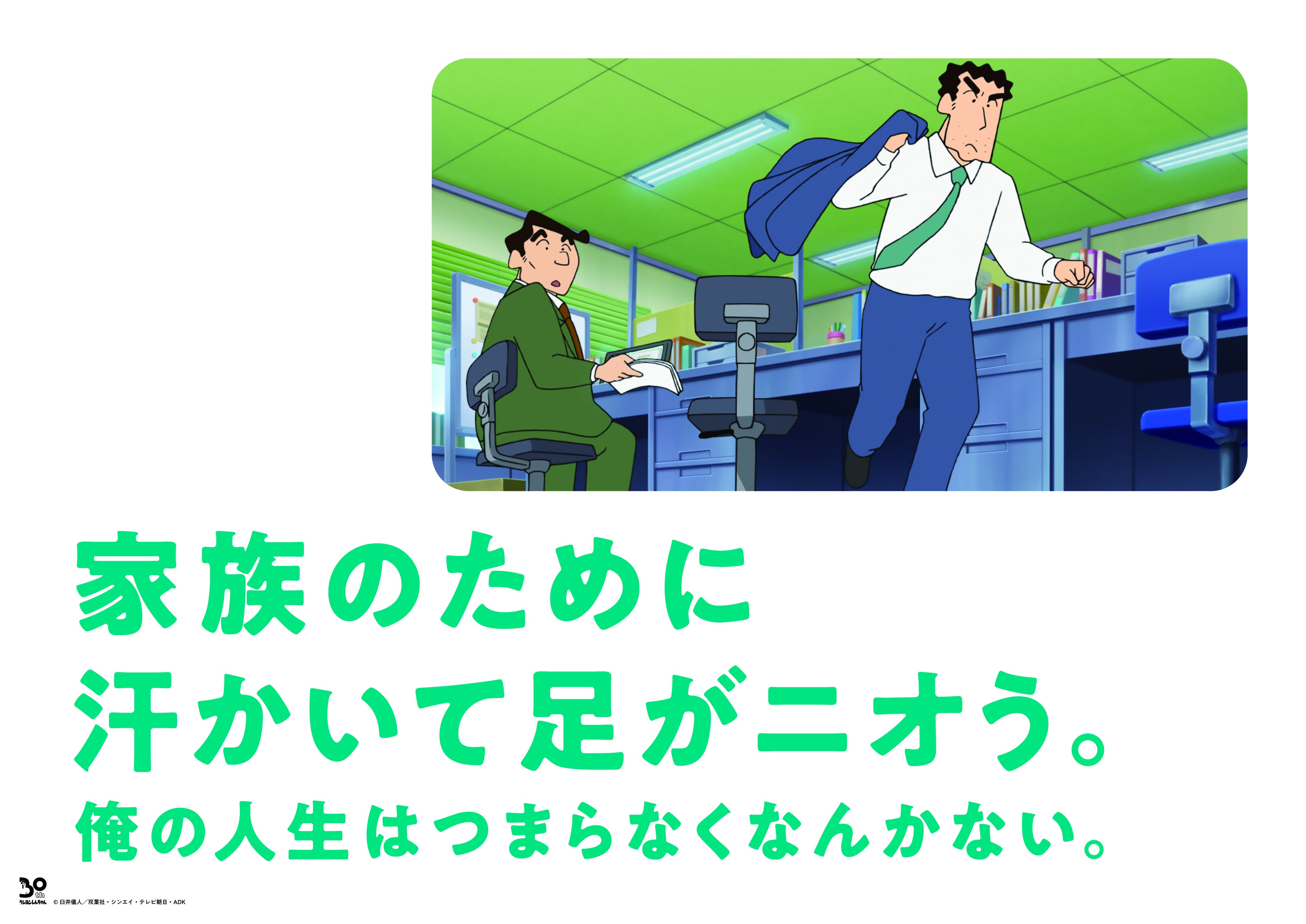 「足のニオイに、お疲れさまです。」頑張るすべてのお父さんを応援!4月18日(月)~4月24日(日)の1週間限定でクレヨンしんちゃんの世界観に包まれる