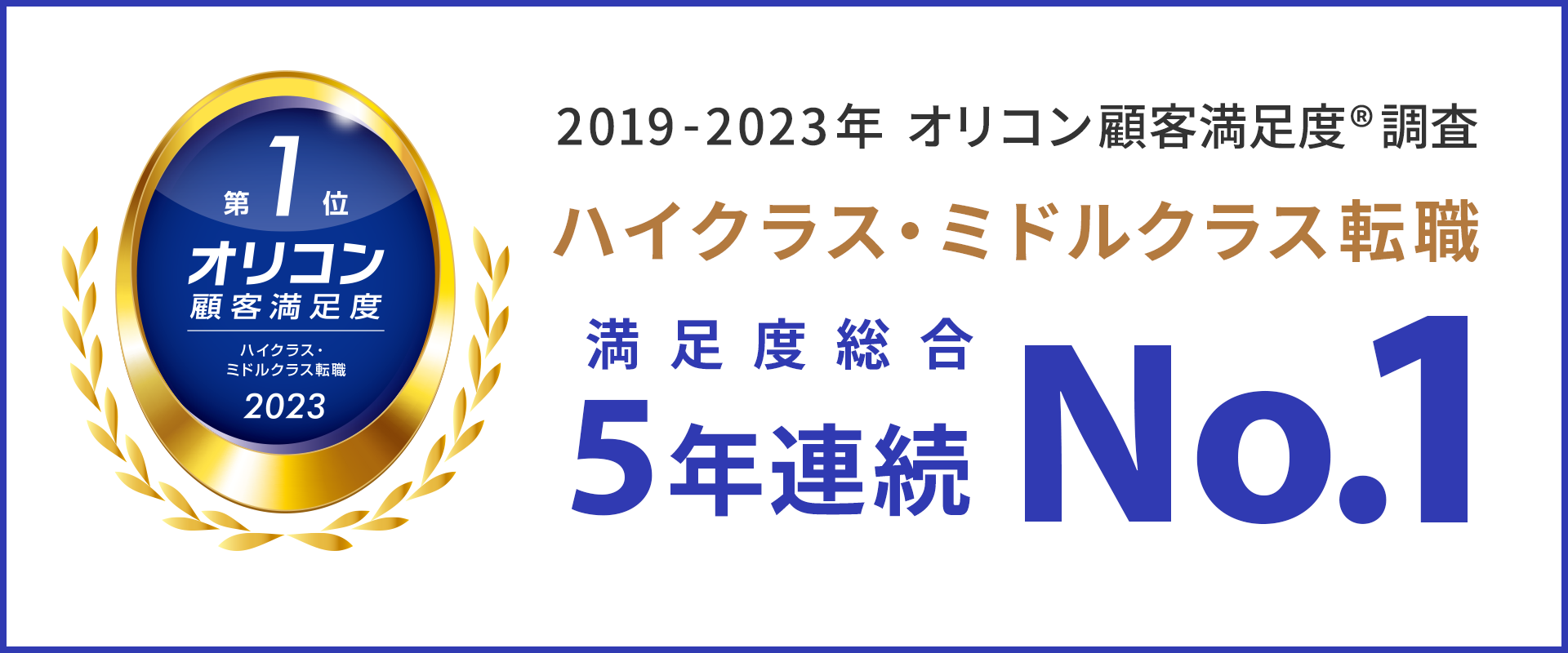ジェイ エイ シー リクルートメント「オリコン顧客満足度®調査 ハイクラス・ミドルクラス転職」において5年連続 総合第1位を獲得!