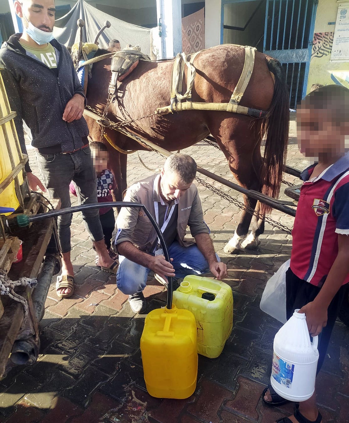 チャイルド・ファンドは、イタリアのメンバー団体が、30年以上にわたってパレスチナで支援活動を行ってきたことを生かし、ガザ地区での緊急支援を開始しました。11月4日、8日には、安全な水や物資を6,000人の子どもたちや女性に配布しました。ガソリンなどの燃料がないため、ロバや馬がカートを引いて水や物資の運搬を行っています。
