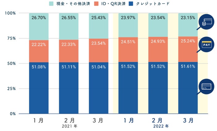 決済手段別では「ID・QR決済」利用が伸び、「現金・その他決済」は縮小という結果でした。