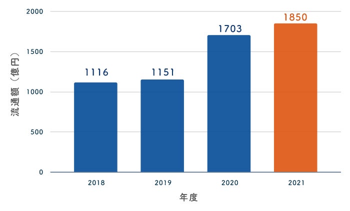 - 流通額は昨対比105.17%と増加。前年の2021年1月〜3月は昨対比154.22%と急拡大し、2022年1月〜3月はそこからさらに増加した結果に。