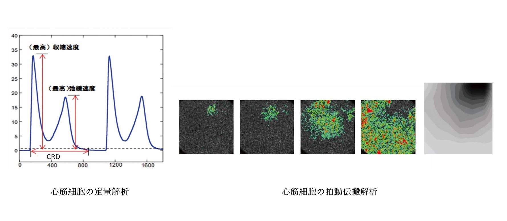 例えば、心筋細胞など動きを有する細胞において拍動伝播を可視化することができるため、不整脈を引き起こすような細胞間結合の異常や薬剤による影響を検証することや、ヒトiPS細胞由来の疾患モデル細胞について、その表現型を動きの観点から定量評価するなど、多くの利用シーンが想定されます。また、創薬や再生医療の研究などで、細胞に対する染色を避けたい場合においても、非染色での細胞評価を可能にします。