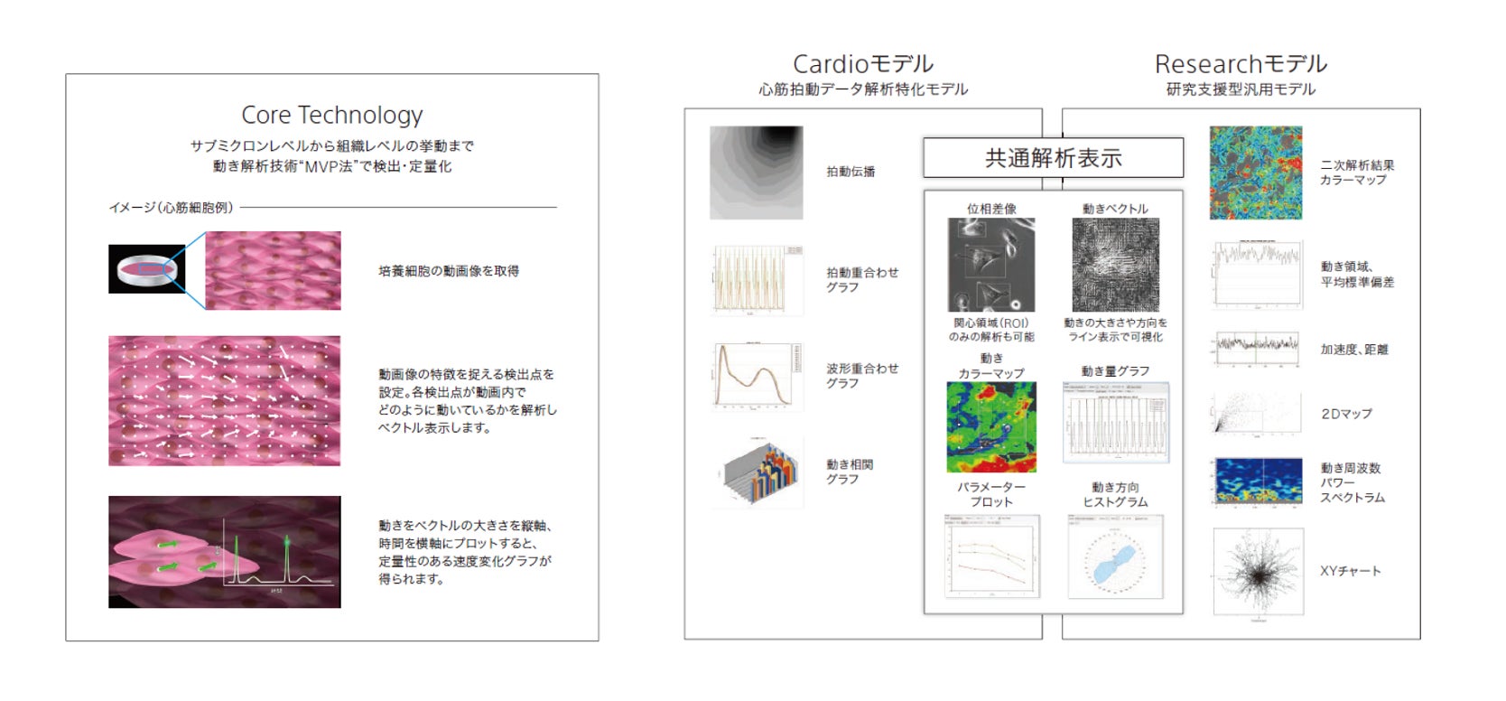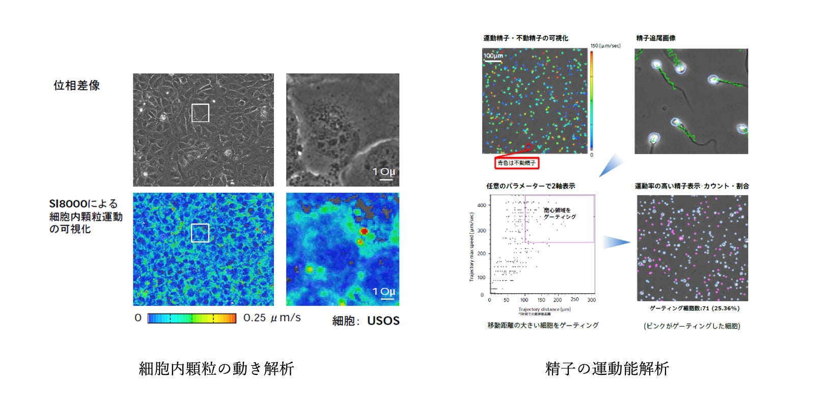 2014年にソニーにより販売開始されたセルモーションイメージングシステムSI8000シリーズは、市販の培養細胞用顕微鏡および撮像装置で撮影された細胞の動きを非染色・非侵襲で定量評価し、従来は実現が困難とされてきた、特殊な培養容器や染色試薬を必要としない画期的な細胞機能評価ソリューションです。