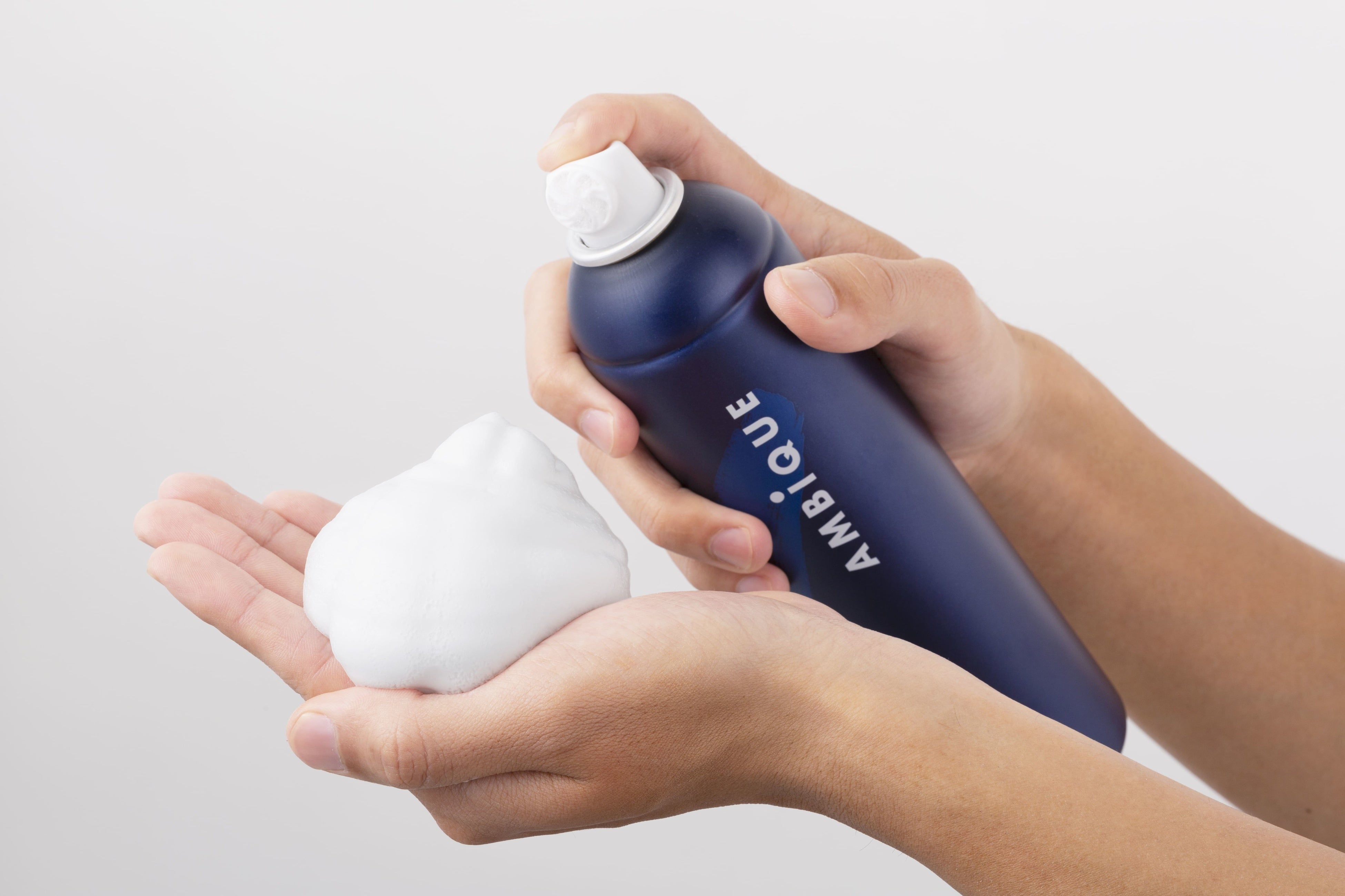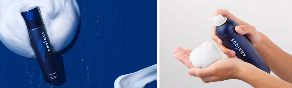 AMBiQUEからヘアケアアイテムが新登場!「10,000ppmの高濃度炭酸」×「メンズ初!きめ細かい泡が出てくるサイクロンノズル」が生み出す、炭&泥配合の超濃密ミクロ泡が、毛穴奥の皮脂汚れを吸着・分解し、頭皮をスッキリ洗い上げます。