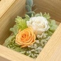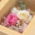 また、プリザーブドフラワー電報「フォト・エ・フルール」は、インテリアに馴染むウッディなフレームに、お好きな写真を飾っていただける商品で、ピンク系、グリーン系の2色から選んでいただけます。