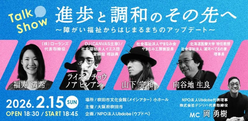 2/15(日)吹田市で開催、トークイベント『進歩と調和のその先へ』 ~障がい福祉からはじまるまちのアップデート〜