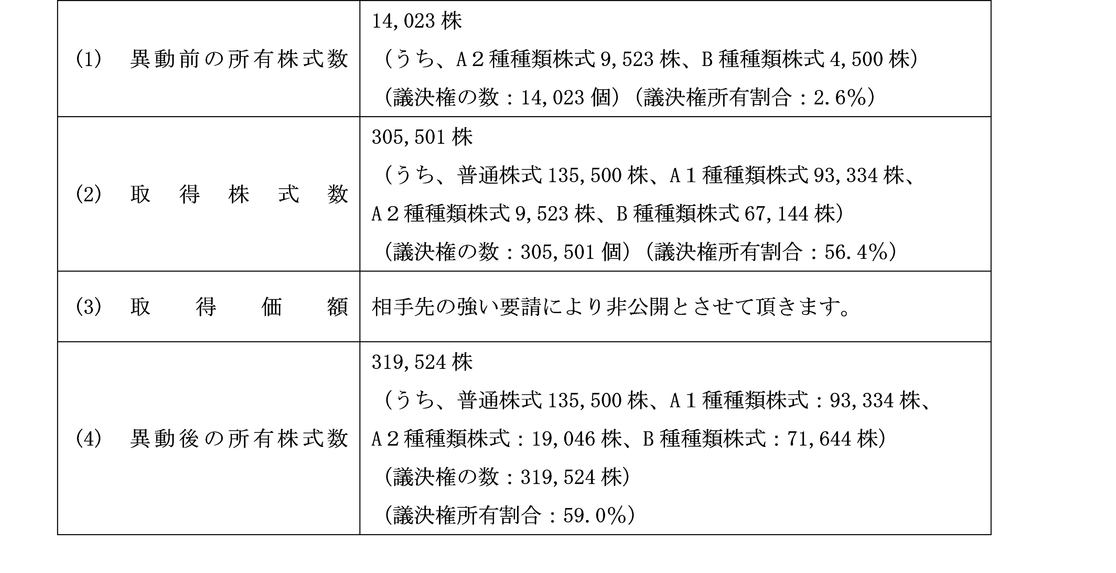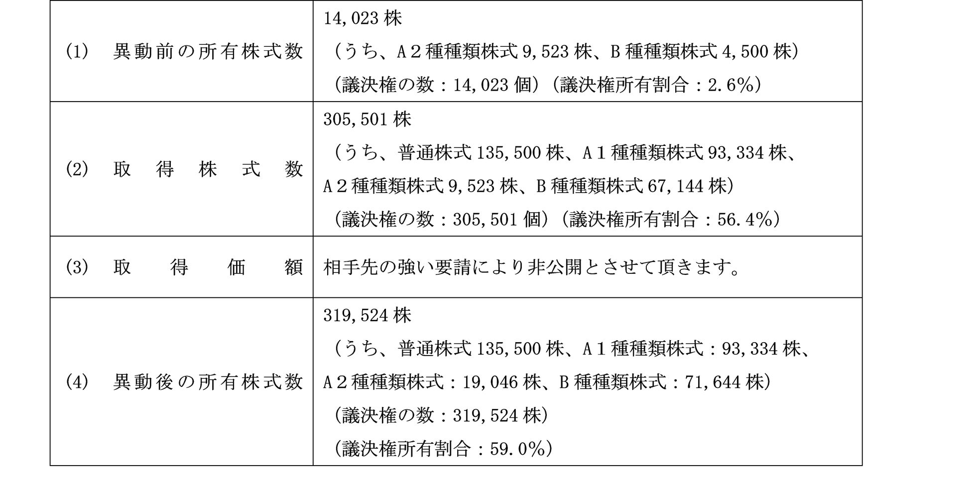 4.取得株式数、取得価額及び取得前後の所有株式の状況