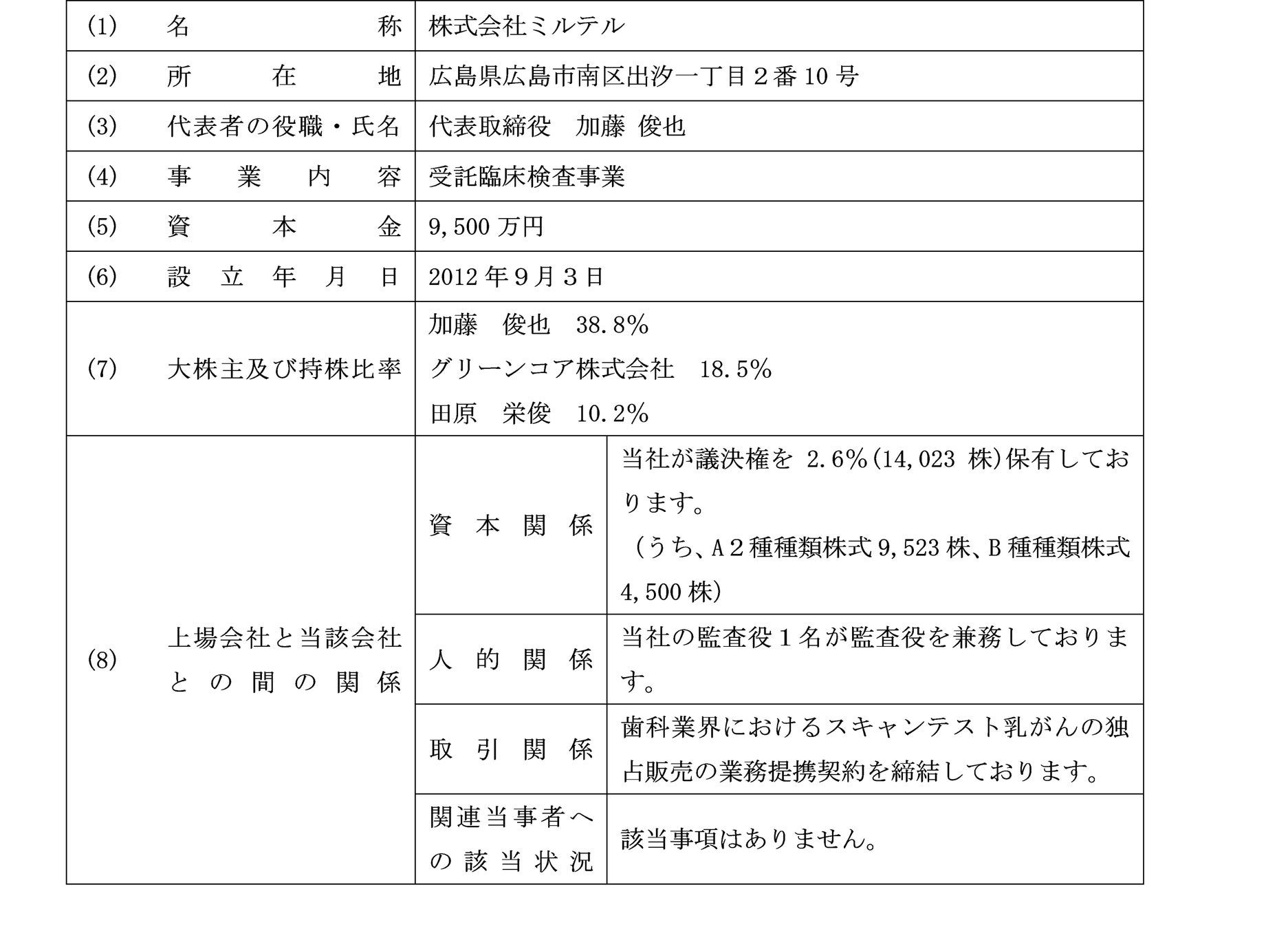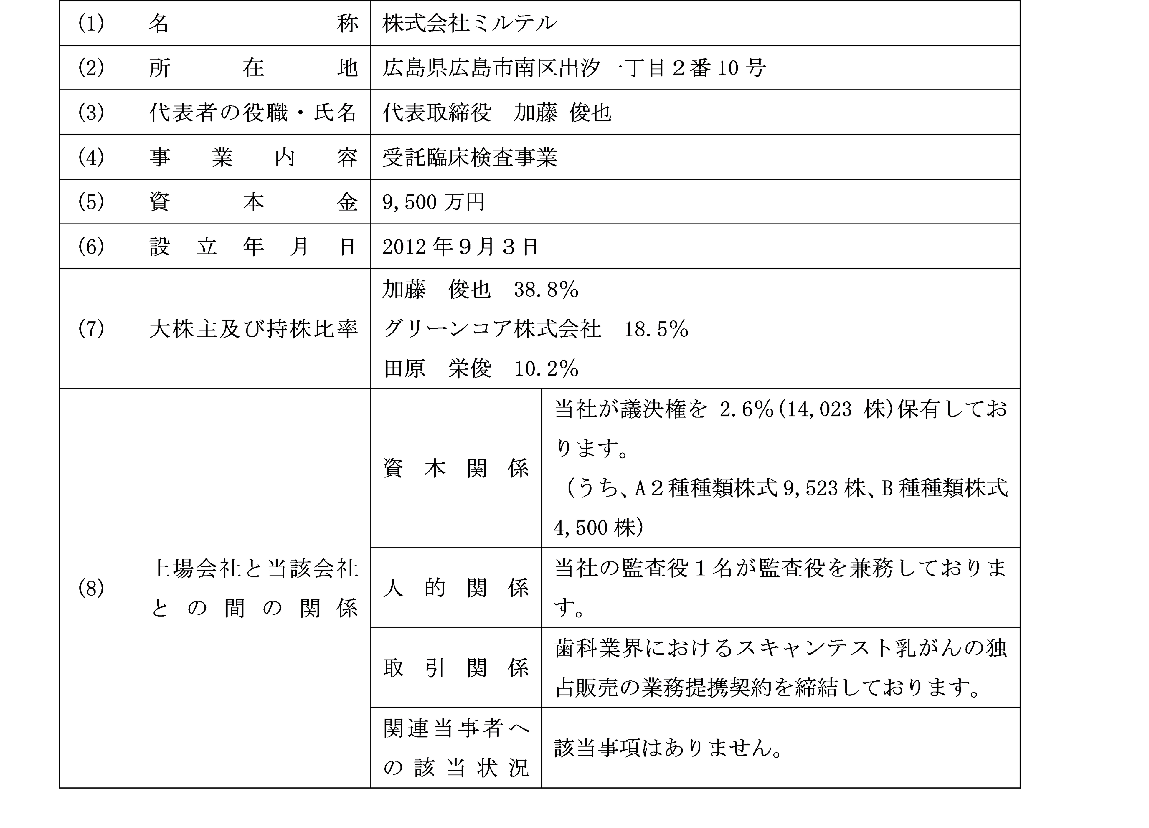 株式会社ミルテルの株式の取得(子会社化)に関するお知らせ