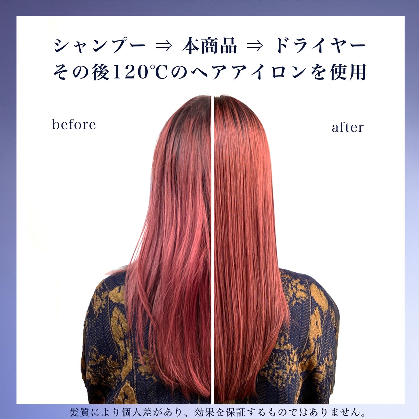 本商品は、日々のアイロンワークを前提に、アイロン前に”仕込む”ことで熱を活用しながら仕上がりのまとまりをサポートする設計。ダメージ毛が抱える“乾燥感・ごわつき・うねり”に寄り添い、毎日のスタイリングをよりスムーズにすることを目的としています。