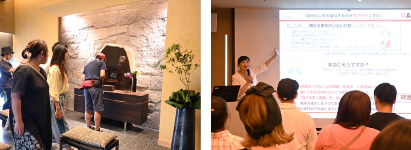 見学後に開かれたプチセミナーでは、“おひとりさま”の終活がテーマに取り上げられ、「自分で決められるうちに準備しておくこと」の重要性に多くの参加者が深く頷いていました。