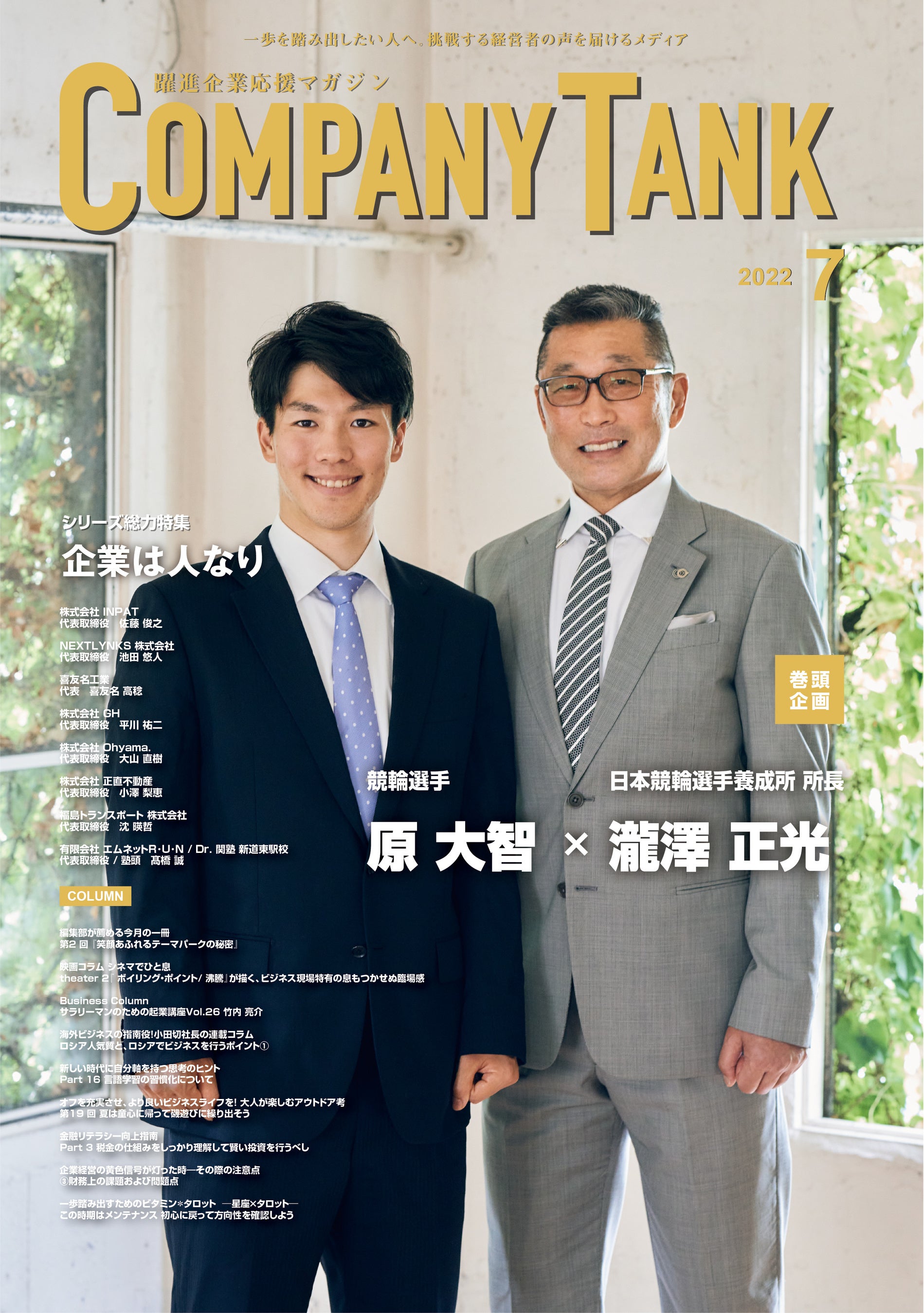 競輪選手 原大智さん 日本競輪選手養成所所長 瀧澤正光さんが、表紙&巻頭対談に登場。ビジネス情報誌「躍進企業応援マガジン COMPANYTANK」、最新号2022/7/1発売