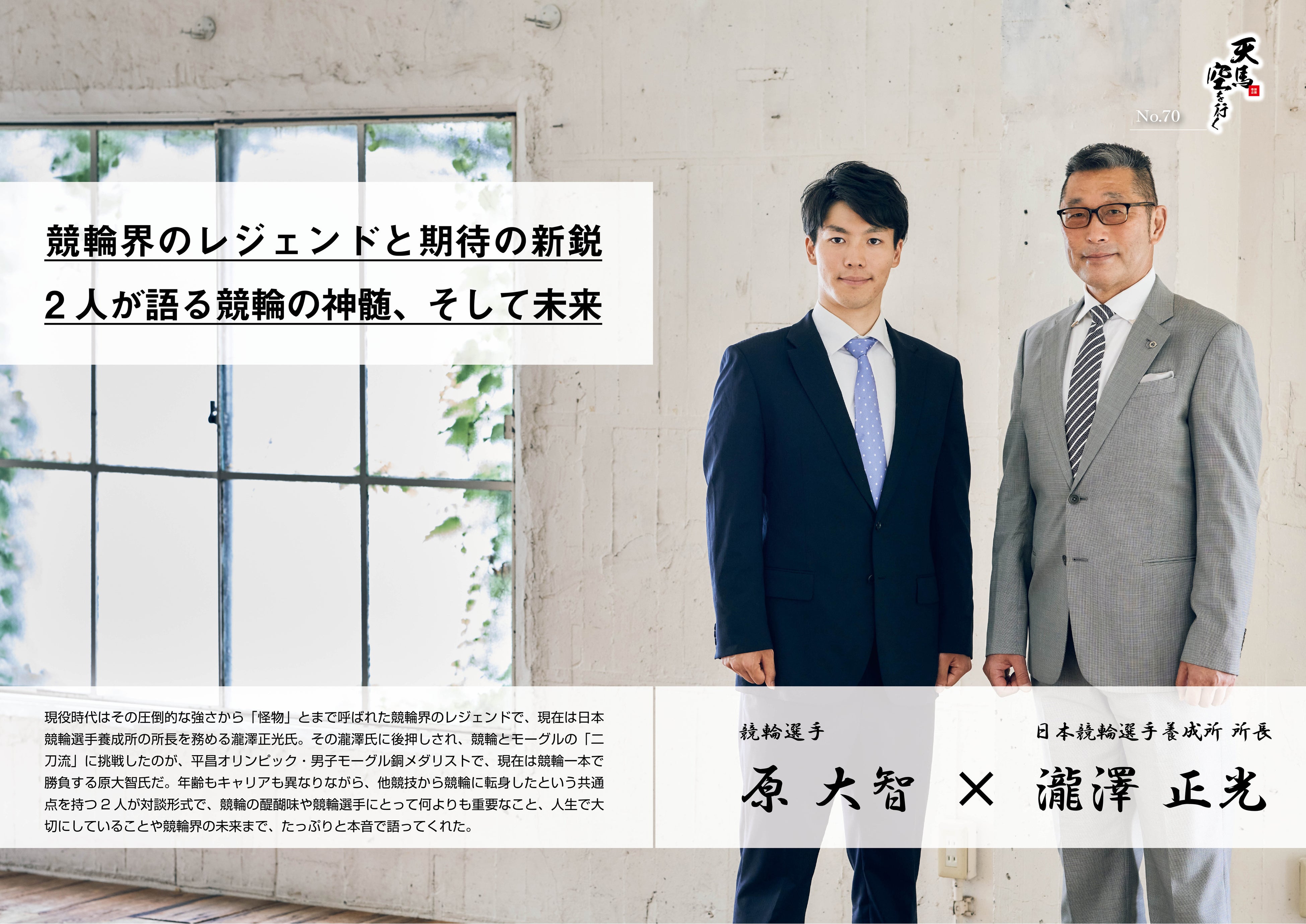 現役時代はその圧倒的な強さから「怪物」とまで呼ばれた競輪界のレジェンドで、現在は日本競輪選手養成所の所長を務める瀧澤正光氏。その瀧澤氏に後押しされ、競輪とモーグルの「二刀流」に挑戦したのが、平昌オリンピック・男子モーグル銅メダリストで、現在は競輪一本で勝負する原大智氏だ。年齢もキャリアも異なりながら、他競技から競輪に転身したという共通点を持つ2人が対談形式で、競輪の醍醐味や競輪選手にとって何よりも重要なこと、人生で大切にしていることや競輪界の未来まで、たっぷりと本音で語ってくれた。