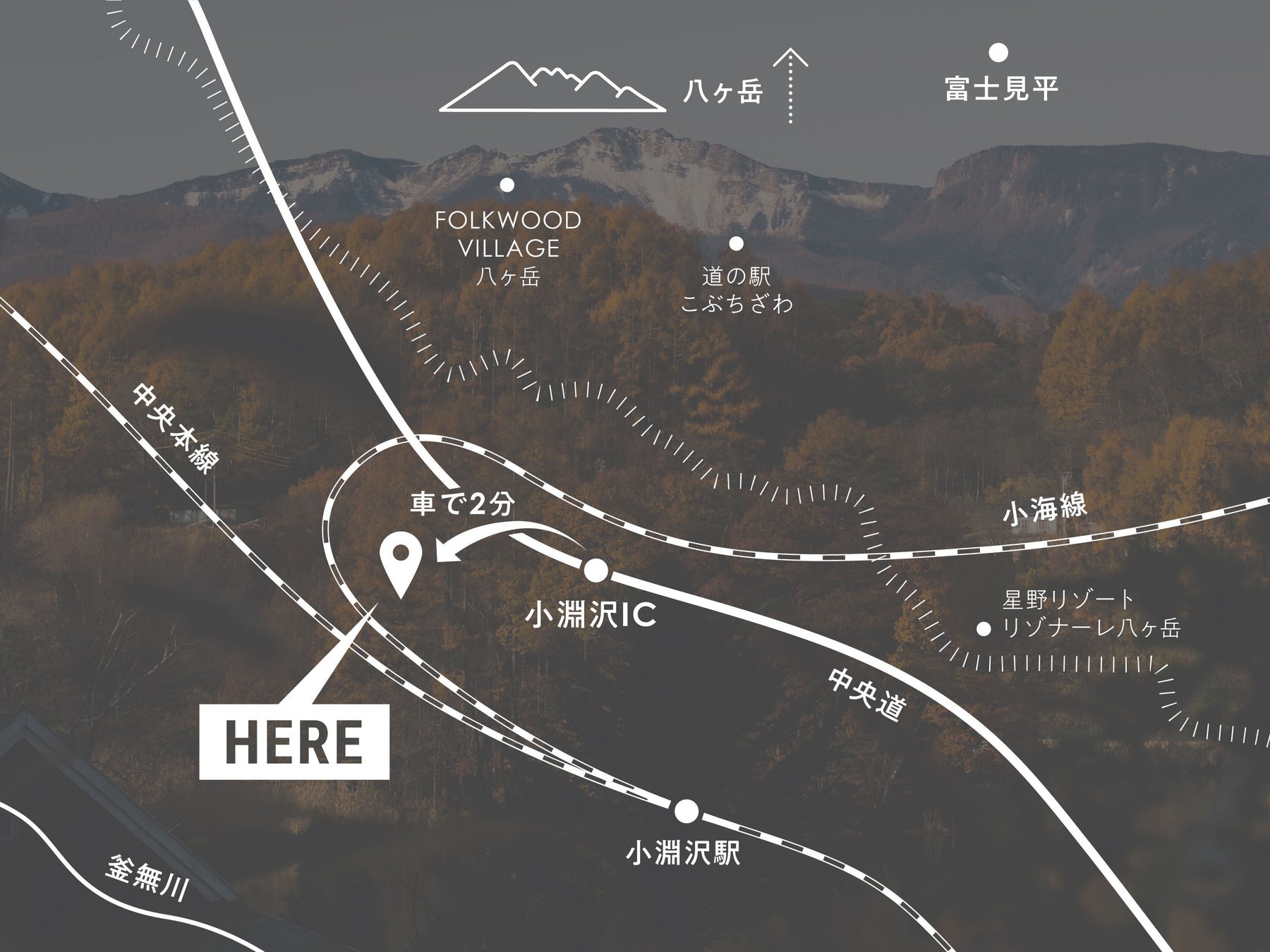 LIFESTOCKの拠点は、小淵沢インターチェンジから約2分、都心からアクセスしやすい場所に立地しています。