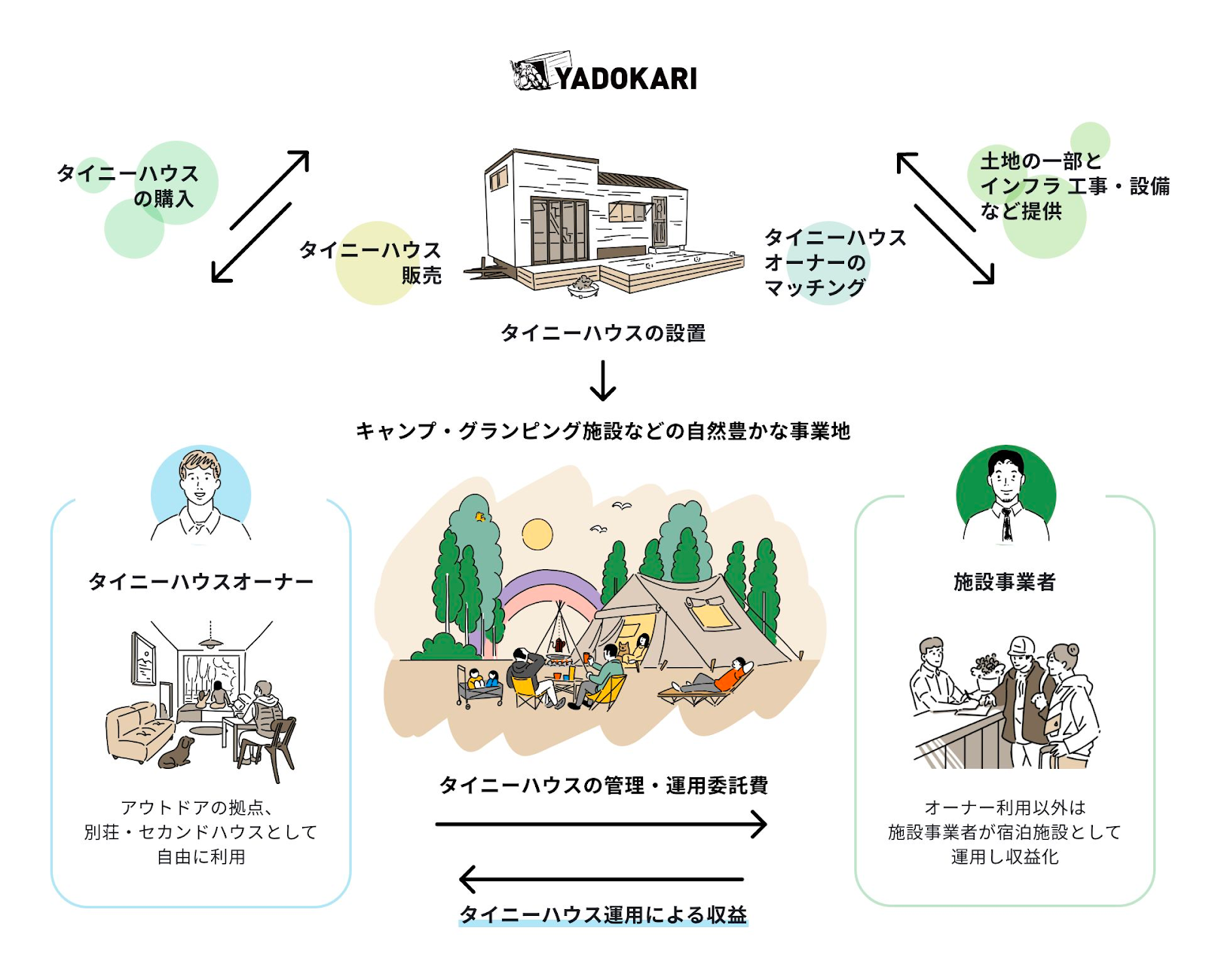 暮らし(住まい方・働き方)の原点を問い直し、これからを考えるソーシャルデザインカンパニー「YADOKARI」。暮らしに関わる企画プロデュース・ブランディング・PR、メディア運営、遊休不動産と可動産(タイニーハウス・VAN)の活用・施設運営、まちづくり支援などを主に手掛ける。