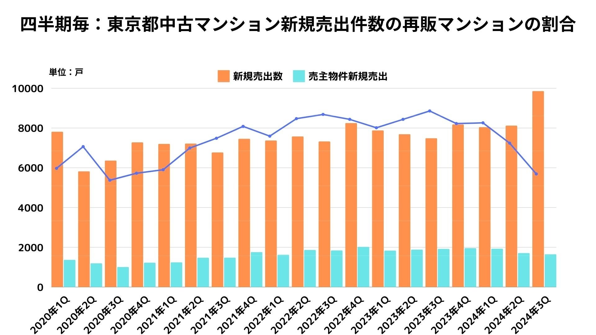 グラフ4:四半期毎:東京都中古マンション新規売出件数の再販マンションの割合