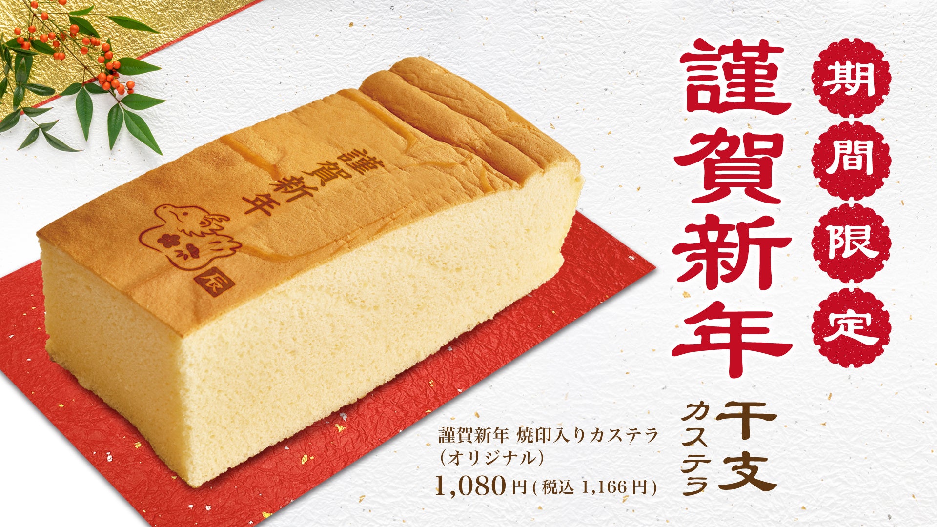 謹賀新年 焼印入りカステラ(オリジナル)1,080円(税込1,166円)