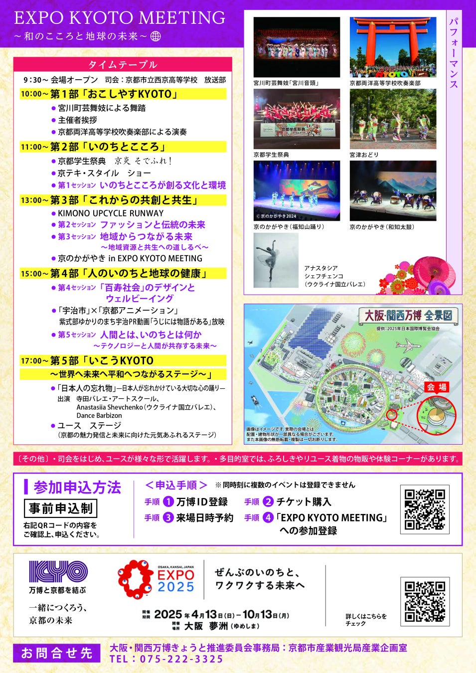 「EXPO KYOTO MEETING」は事前予約が必要となります。イベントは入場無料(抽選)ですが、万博の入場チケットが必要になります。