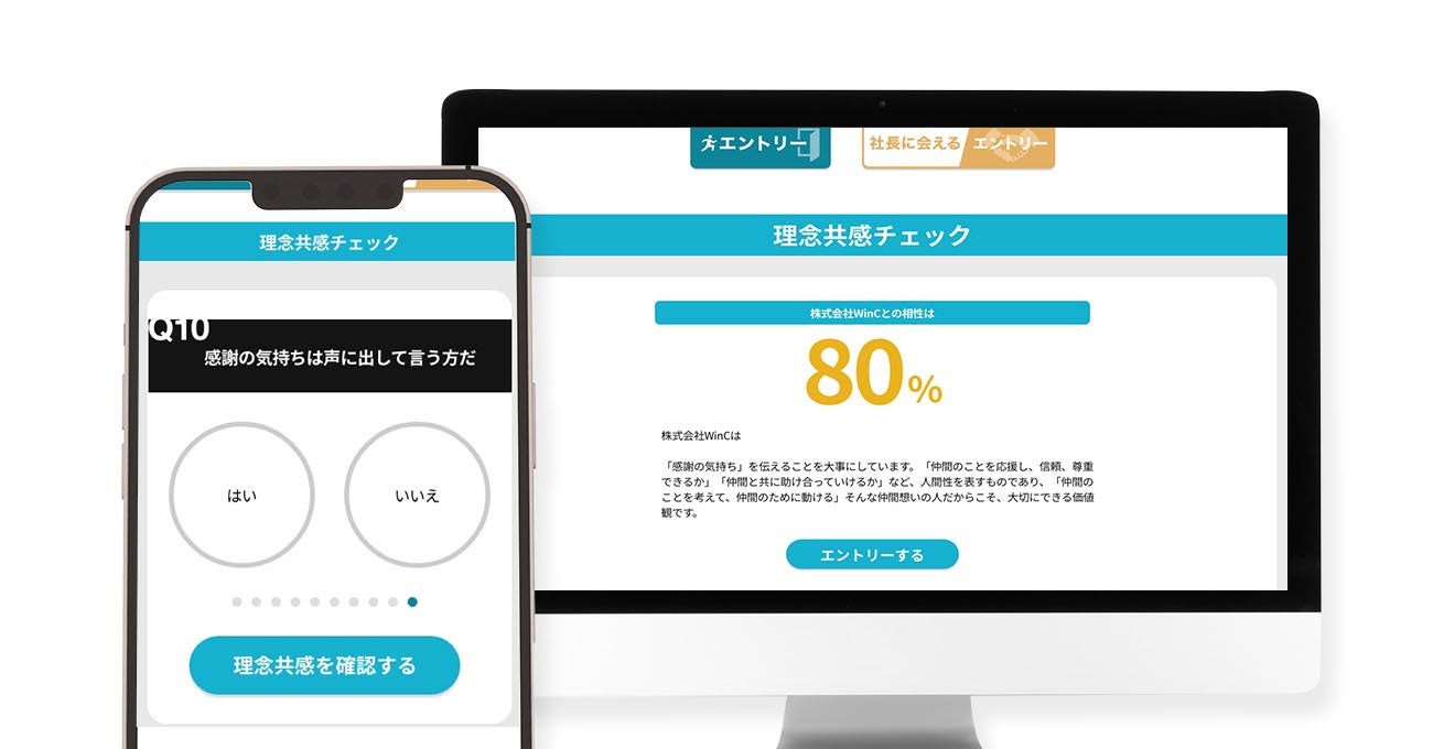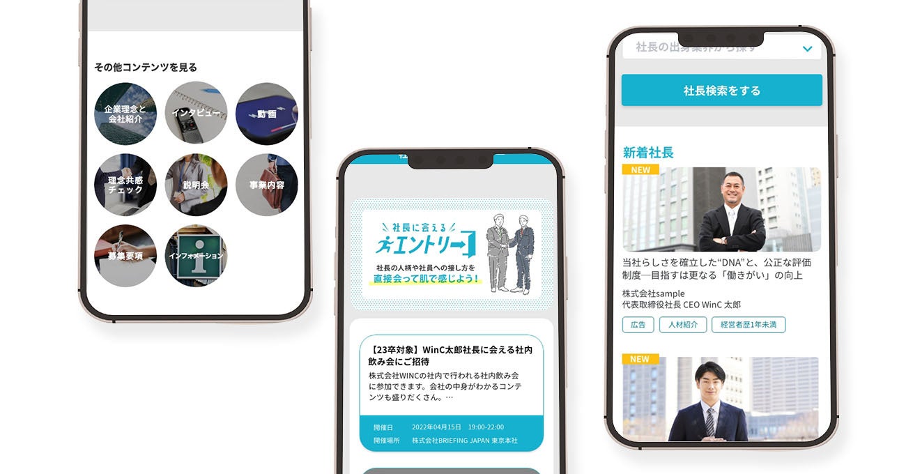 就職活動は、給与や仕事内容、勤務地など、「どこで何をするのか」を軸に企業探しをすることがスタンダードとなっています。しかし、企業は変化をしていくもの。給与や仕事内容、勤務地も、変化する場合がありますが、たった一つ、”経営者の想い”は変わることはありません。経営者の変わらない想いを発信し、想いに共感する学生と企業をつないでいきたいと思い、『WinC Career』と名付けました。