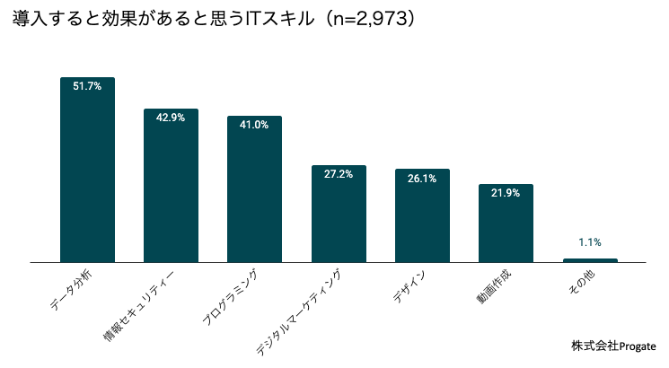 - 身につけたいITスキルは「プログラミング」「データ分析」「動画作成」